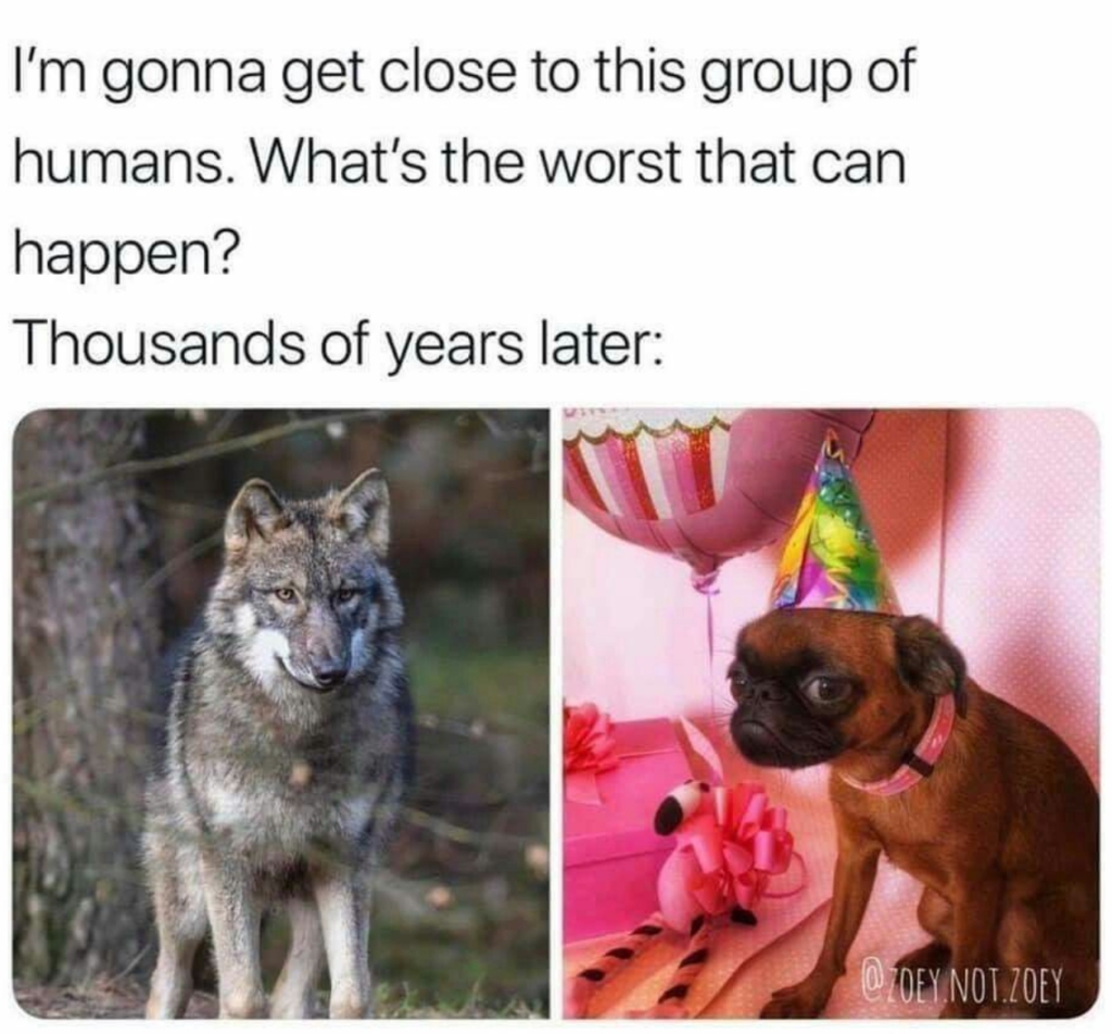 De wolf is een erg sociaal dier. Hij leeft, net als de mens, in groepsverband, met een rangorde. Dat maakte het dier geschikt en aantrekkelijk als gezelschapsdier, waarbij de wolf de mens als leider beschouwde.