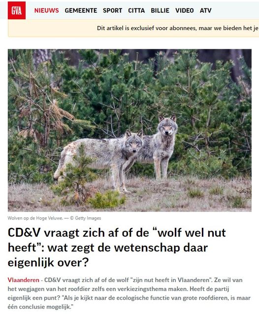 De Vlaamse partij CD&V – de V staat voor Verzuring – vraagt zich af of de wolf wel nut heeft en stelt plots “dat er geen plaats is voor de wolf in Vlaanderen”, net nu het aantal wolven in Vlaanderen een dieptepunt heeft bereikt. Afspraak in het stemhokje op verkiezingszondag 9 juni! Dan zal de…