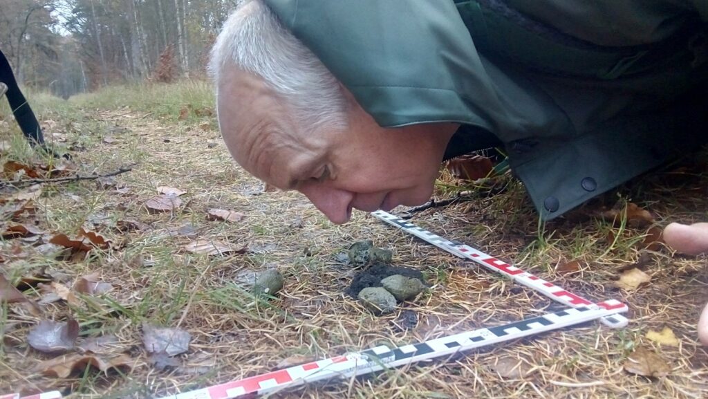 Heb je een veelbelovende drol of urinemarkering gevonden? Dan volg je dezelfde procedure als bij loopsporen: neem een orthofoto van bovenaf en een paar foto’s van hoe de drol of urinemarkering zich in het terrein bevindt. En vervolgens meld je je vondst aan Welkom Wolf of Wolven in Nederland.
