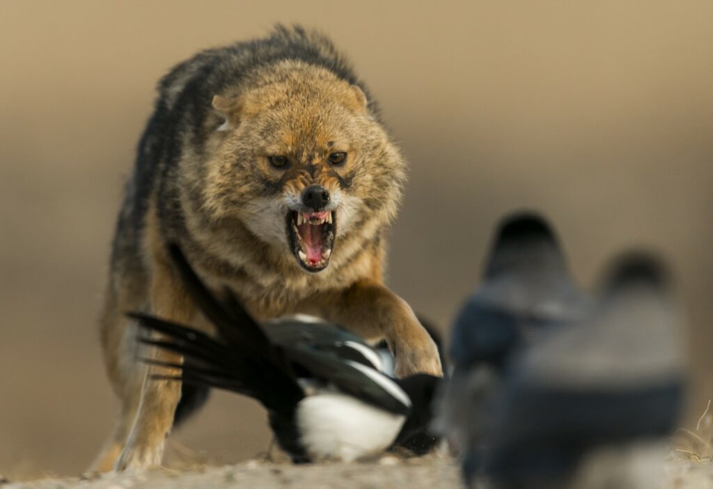 Het dieet van zowel vos als jakhals overlapt ook deels met dat van de wolf, wat voor de wolf dan weer een reden is om zoveel mogelijk jakhalzen én vossen op te ruimen binnen zijn territorium. Nochtans jaagt de wolf vooral op grote tot middelgrote zoogdieren zoals edelhert, damhert, ree, wild zwijn, haas en konijn, terwijl de prooidieren van een goudjakhals – en zeker die van een vos – gemiddeld veel kleiner zijn. Toch hanteert de wolf het principe ‘opgeruimd staat netjes’ als het op andere hondachtigen aankomt.