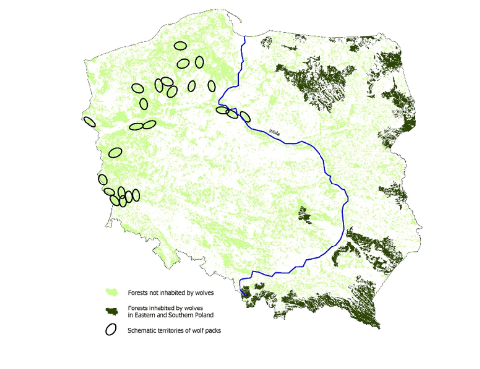 Wolven waren al sinds de Tweede Wereldoorlog erg zeldzaam in West-Polen. Toen de eerst wolven zich rond 2000 vestigden in het oosten van Duitsland was de wolf in het naburige westen van Polen nagenoeg uitgestorven. Dat laatste was een pervers neveneffect van de beschermde status die de wolf sinds 1998 genoot in Polen. Zolang er een premie gold voor gedode wolven was het voor Poolse jagers interessant om altijd een reserve aan wolven in stand te houden. Maar toen die premie werd afgeschaft, was de wolf een tijdlang helemaal vogelvrij.